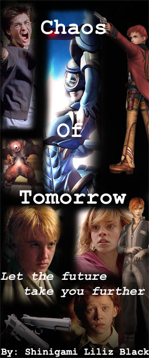 Chaos of Tomorrow Summary: The wizarding world is living chaos, somehow exposed. Harry is having weird feelings, Voldemort is looking for a weapon, and Draco is not entirely human. Lots of mysteries answered! Slash! Half AU! Here you can fic the story Chaos of Tomorrow. Just to remind you the fic is being written. These are the chapters written so far. Only available until chapter three. Chapter Four Chapter Five Chapter Six Chapter Seven Chapter Eight Chapter Nine
